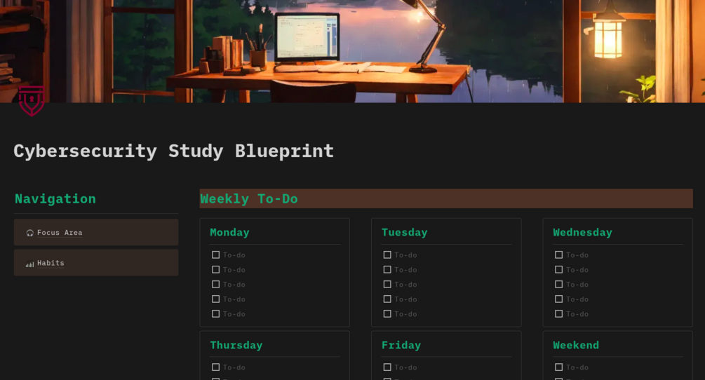 Notion Cybersecurity Study Planner Template